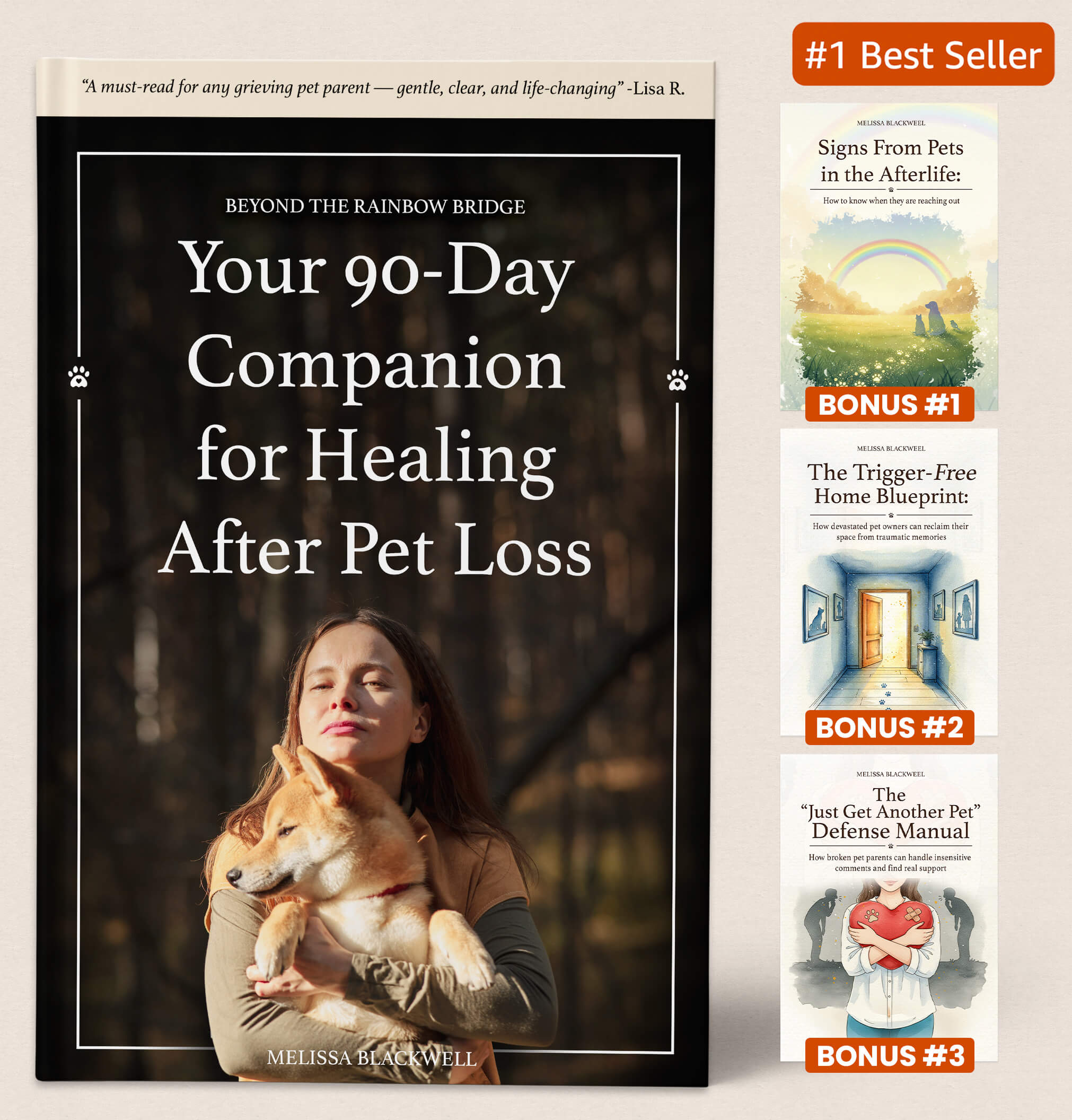 Beyond the Rainbow: Your 90-Day Companion for Healing After Pet Loss is a gentle, step-by-step system designed to help pet parents process grief without feeling like they’re betraying their beloved companion’s memory. It shows you how to stop the guilt loops, reclaim your home from traumatic triggers, and transform unbearable pain into a lasting connection that honors their life.